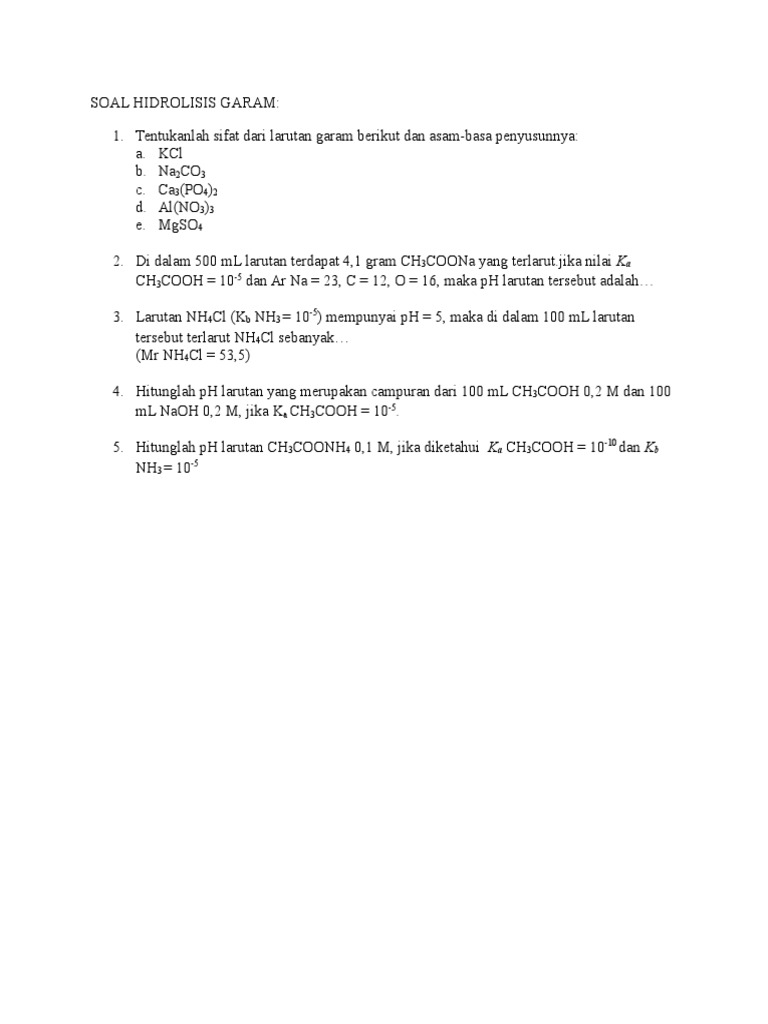 Berikut soal kimia sma kelas 11 bab hidrolisis garam dan pembahasannya: