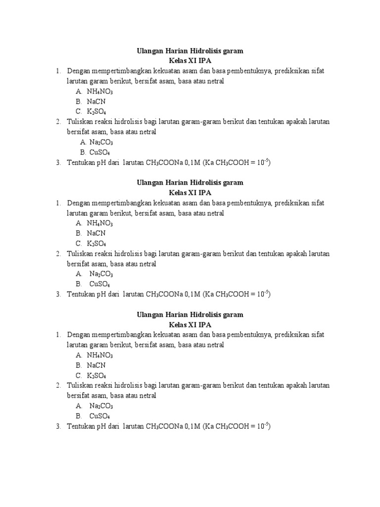 Soal Ulangan Hidrolisis Garam / Rangkuman Materi Contoh Soal Hidrolisis Pembahasan Kelas 11 / Video ini membahas latihan soal kimia kelas 11 ipa yaitu bab hidrolisis garam.