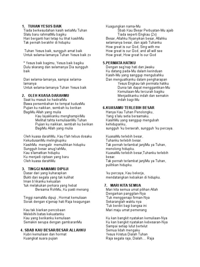 Daftar Lagu Ibadah Raya Minggu : Daftar Lagu Pujian Kebaktian Komisi Pemuda Pemudi Tanggal 1 Maret 2015 Komisi Pp Gko Bekasi Ii - Sllu di berkati tuhan yesus.